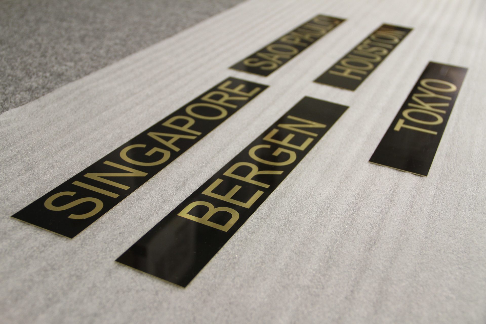 The clock is Decorative type C in brass but with a different color and gloss. The signs are in brass plate with milled characters. The clock is synchronized by our master clock WDP-WT which enables displaying several time zones.
